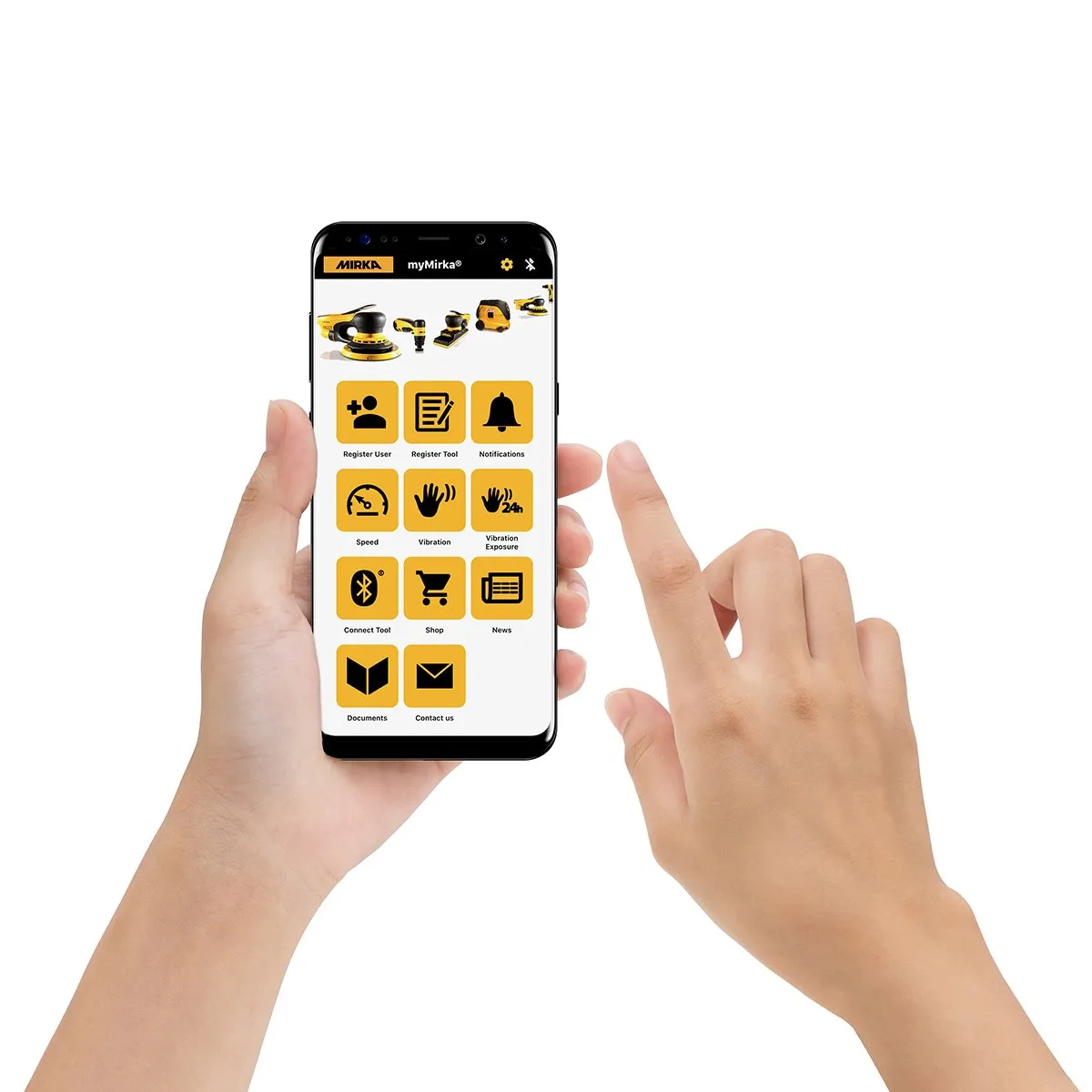 With the myMirka app you can keep on top of your usage and health by using it to measure tool vibrations, track your daily vibration exposure, control your RPM range and set the maximum runtime of your tool. You can also use the app to register your Mirka tools for the +1 year warranty.
