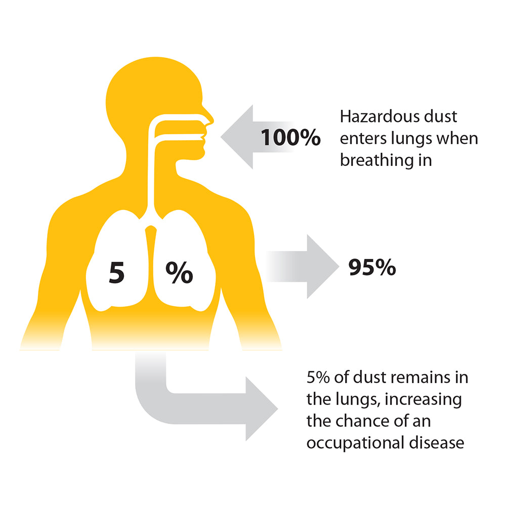 Daily and long-term exposure to dust is a significant occupational hazard. The amount of dust entering the lungs or harming skin can be strongly reduced by using an advanced and efficient dust extraction system during sanding, which also lessens the risk of a work related disease or a dangerous exposure.