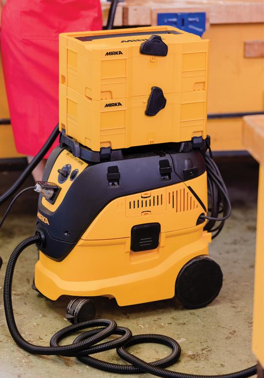Mirka dust extractors can be used with Mirka storage systems or those from other brands, and can also be used to operate two sanders at once. Store, relocate and operate a sanding station as a single mobile unit.