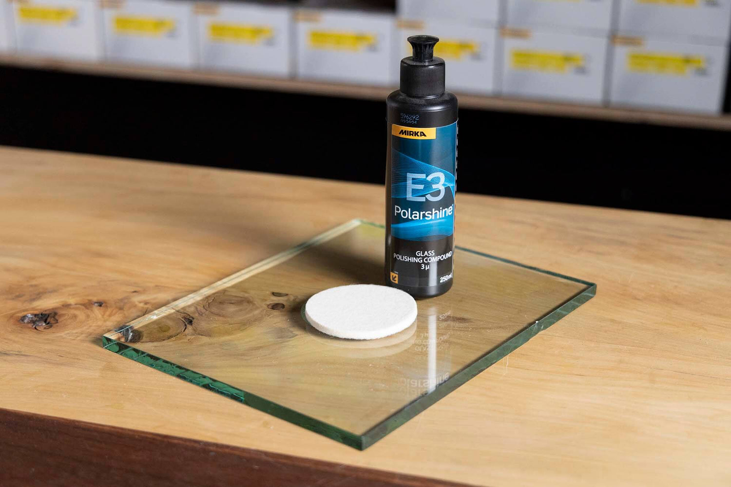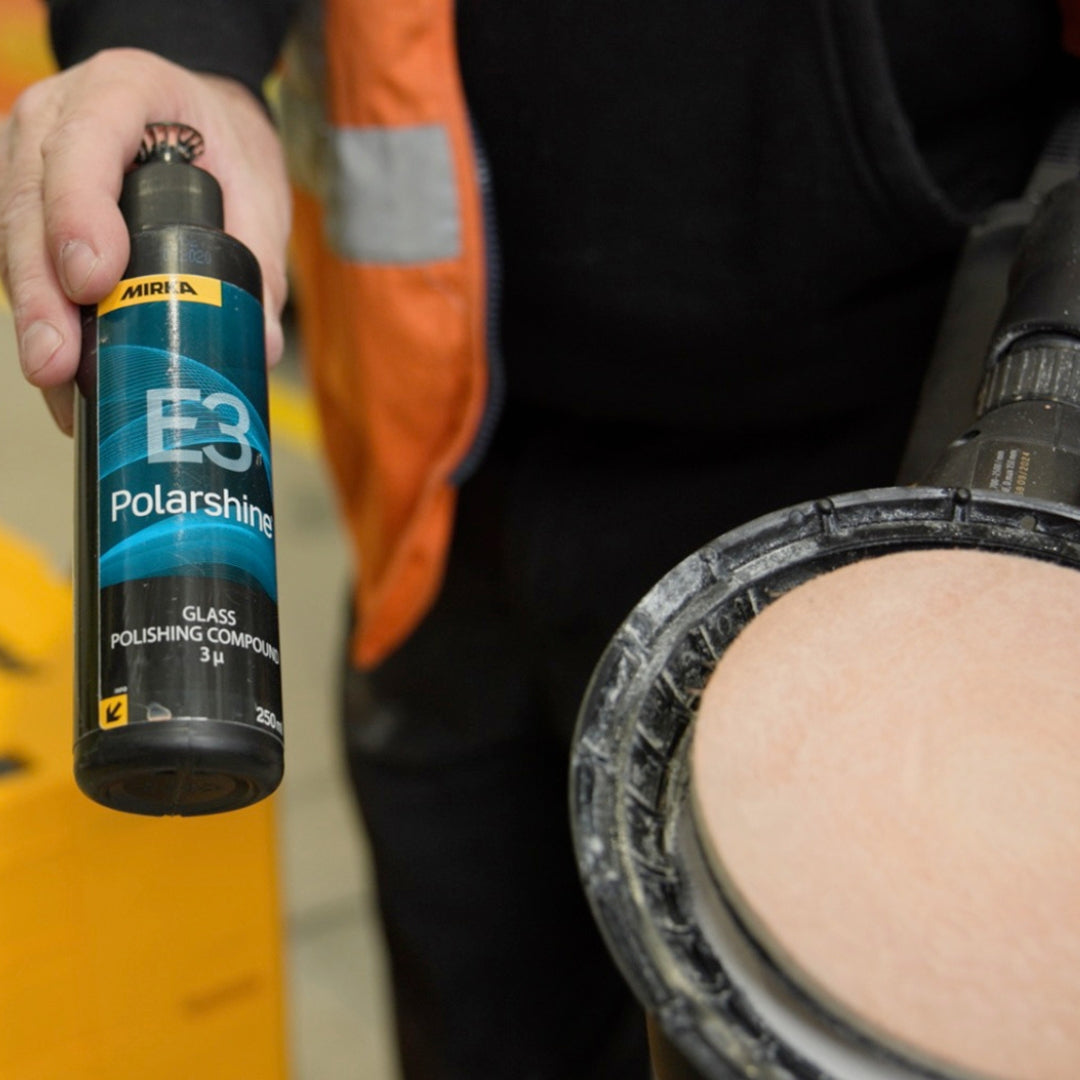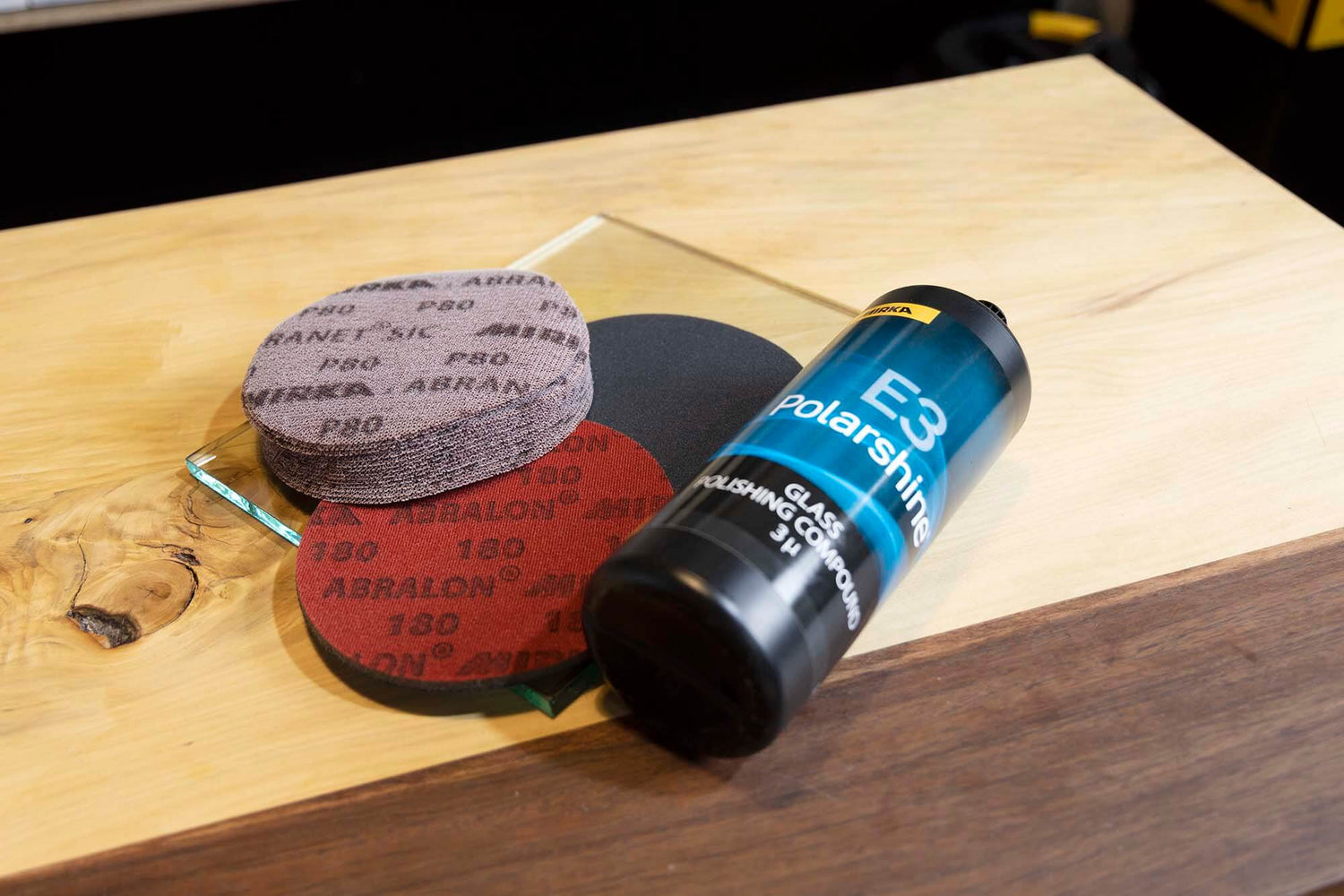 Mirka’s glass reconditioning system is designed for precision sanding and polishing. The goal is to remove scratches without compromising optical clarity. The process works in stages, with abrasives tailored for defect removal and polishing compounds for a flawless finish.
