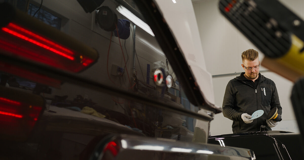Polish the surface with Polarshine 35 and a Lambswool Pad PRO together with Mirka ARP-B Polisher to eliminate sanding scratches.