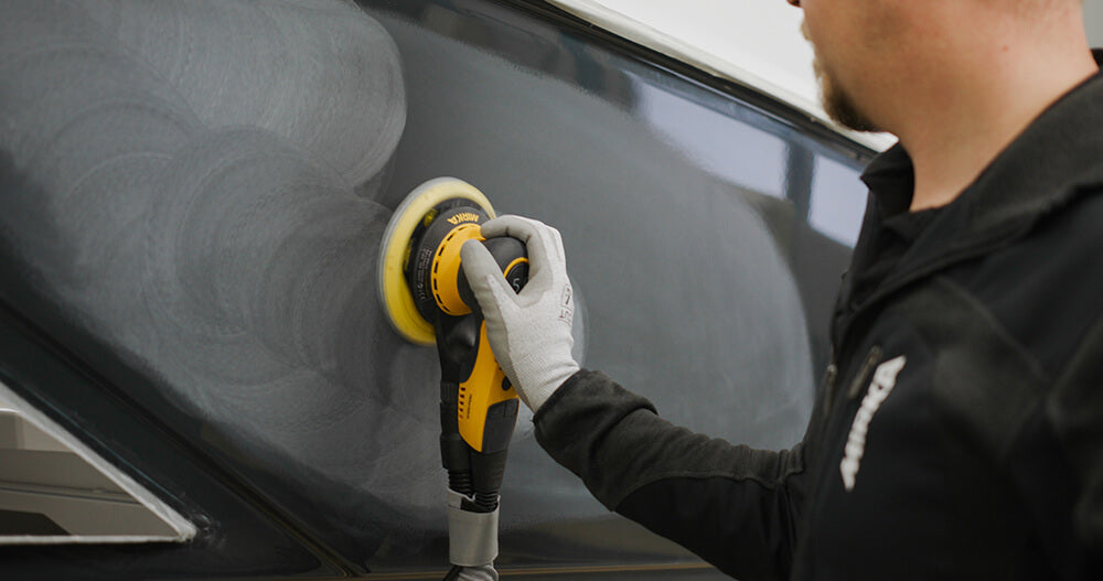 It is easy to condition a gel coat finish with Mirka solutions. Use Abralon for machine sanding the surface, work with Polarshine to compound, to remove swirls and to polish, and finish the job by protecting the surface.