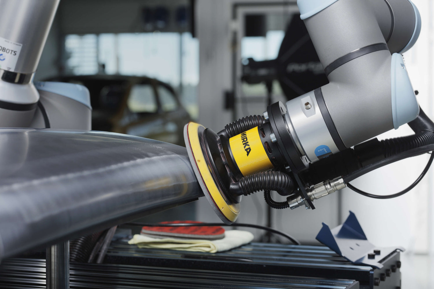 Mirka robotic sanding heads can be adapted to work with Universal Robots collaborative solutions using a special UR installation kit.
